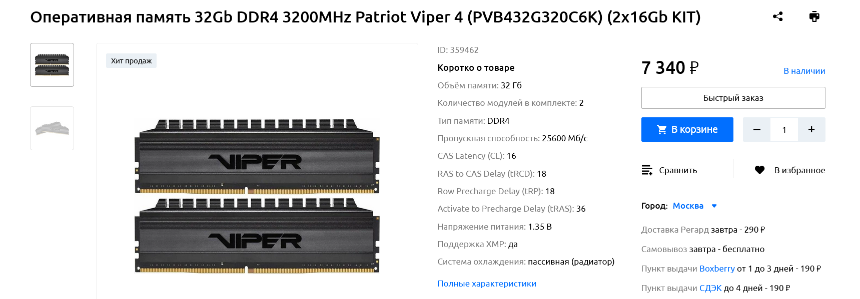 Оперативная память стандарта DDR4 в конце 2023 года продолжает радовать нас низкими ценами, поэтому в сборки среднего уровня можно смело брать сразу 32 ГБ, которых для игр хватит еще очень и очень надолго. В комментариях иногда встречается мнение, что лучше взять 16 ГБ ОЗУ, но более быстрой, немного сэкономив, но это довольно спорный момент. 16 ГБ хватает уже впритык, и вам, скорее всего, придется даже закрывать браузер при запуске тяжелых игр, как в старые добрые времена. А прирост в производительности игр от более быстрой памяти в реальности не такой уж и большой и проявляется в случае использования мощных процессоров, и даже там не заметен на глаз, без мониторинга.