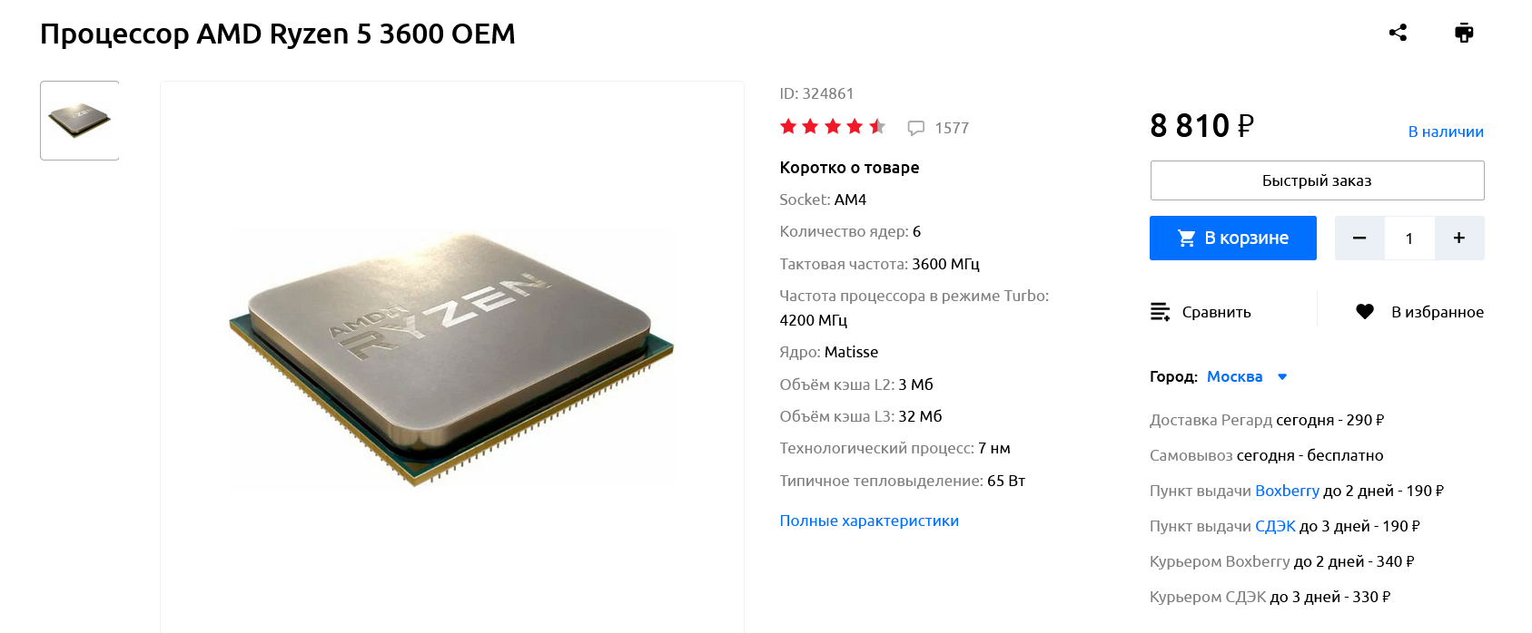 Сегодня мы возьмем процессор, который обычно покупают на вторичном рынке, и который довольно редко можно встретить в новых сборках — Ryzen 5 3600. У него шесть ядер и 12 потоков, которые все еще бодро показывают себя в играх, а для бюджетной сборки с недорогой видеокартой увидеть на глаз разницу между Ryzen 5 3600 и гораздо более дорогим Ryzen 5 5600X не удастся при всем желании. Тем более не удастся увидеть разницу с Ryzen 5 5500, который имеет очень схожую производительность, а стоит почти на 800 рублей дороже. Но у Ryzen 5 3600 есть по сравнению с Ryzen 5 5500 одно важное преимущество, которое стало весьма актуальным с выходом новых видеокарт. Его встроенный контроллер PCI Express работает в режиме PCI-E 4.0, тогда как Ryzen 5 5500 ограничен только третьей версией шины.