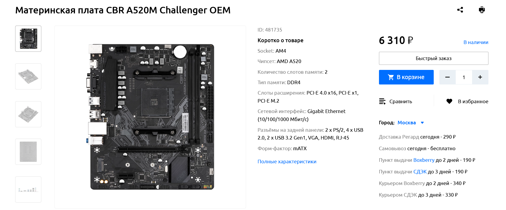 Материнская плата CBR A520M Challenger уже не раз мелькала в моих сборках, и даже в блоге про сборку компьютера из новых и б\у комплектующих я рекомендовал именно ее. На фоне конкурентов со схожей ценой она выделятся радиатором на цепях питания, а это очень важно. Я уже раз обжегся, взяв плату для Ryzen 5 1600 без радиаторов VRM и советовать такие платы можно только для совсем слабых процессоров с четырьмя ядрами.
