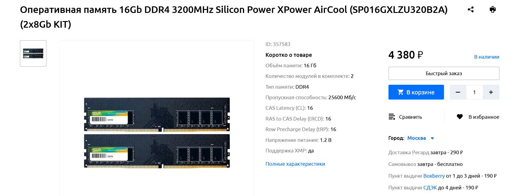 Очень долго я советовал в сборках бюджетные модули ОЗУ DDR4 с частотой 3200 МГц от Patriot и Netac, но сегодня на сайте Регарда мне попалось более интересное предложение — недорогой набор