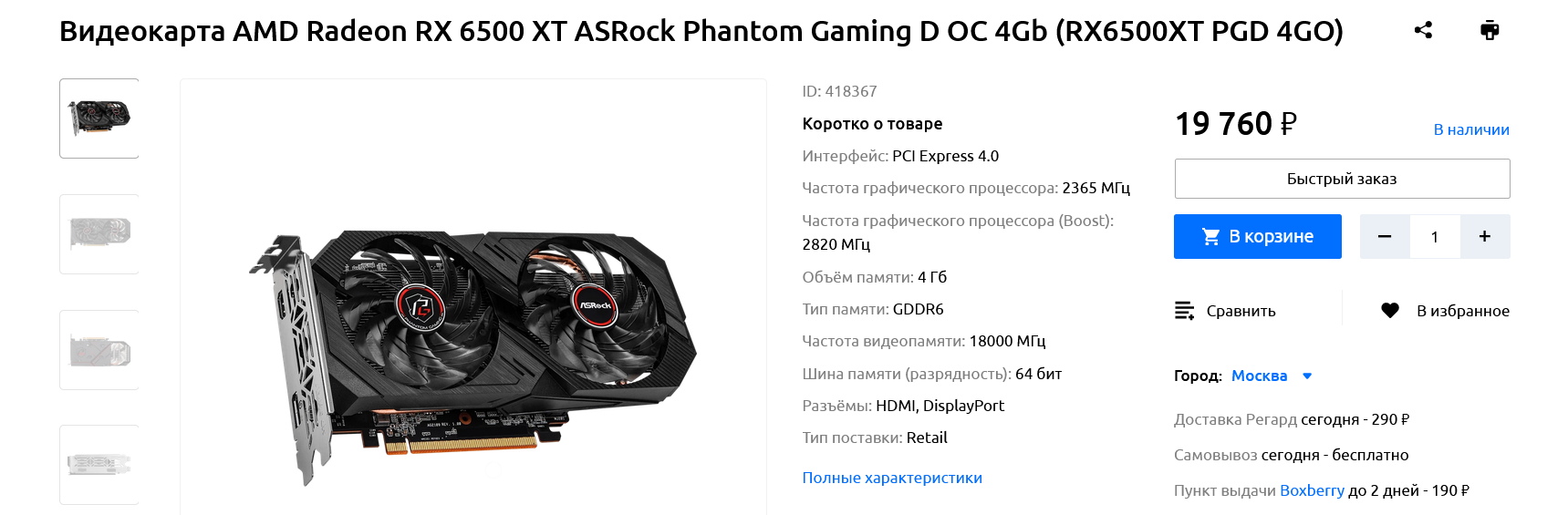 Ситуация на рынке видеокарт сложилась таким образом, что если вам не хватает денег на Radeon RX 6600, которые стоят уже почти 30000 рублей, следующая оптимальная модель, которую можно покупать в бюджетный игровой компьютер — это Radeon RX 6500 XT. Мы возьмем двухвентиляторную модель — ASRock Radeon RX 6500 XT Phantom Gaming D 4GB OC. Казалось бы, понятия "оптимальная" и "Radeon RX 6500 XT" абсолютно не сочетаются, но так считалось во времена, когда доллар стоил 55 рублей. А сегодня, когда цены на видеокарты приблизились к ценам времен майнинга, расклад сил на рынке видеокарт заметно изменился.