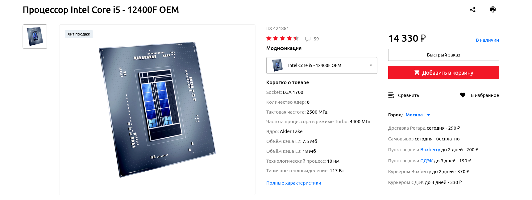 Шестиядерник Core i5-12400F подешевел почти до 14000 рублей, и это позволяет взять его в нашу подборку процессоров для бюджетных игровых ПК. Несмотря на то, что этот процессор присутствует на рынке уже более двух лет, он остается лучшим среди модельного ряда Intel по сочетанию цены и производительности. И, если по каким-то причинам вам не подходит Ryzen 5 5600, Core i5-12400F станет отличным выбором в систему, которую потом можно будет проапгрейдить до гораздо более мощного Core i5-12600KF.