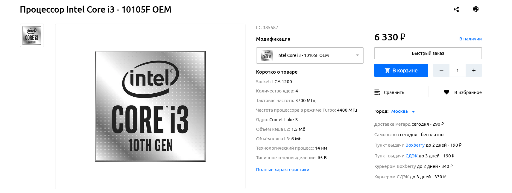 Для задач, которые я описал выше, с головой хватит четырехъядерного процессора Core i3-10105F, который стоит сегодня очень дешево. По производительности он очень похож на популярный процессор Core i7-7700K, который несколько лет назад был мечтой любого геймера и без проблем тянул все новинки игр, включая такие хиты, как The Witcher 3: Wild Hunt и Red Dead Redemption 2. Модель Core i3-10105F немного быстрее более распространенной Core i3-10100F, которая в играх обходит такие популярные в прошлом процессоры, как Ryzen 5 2600 и Ryzen 7 2700.