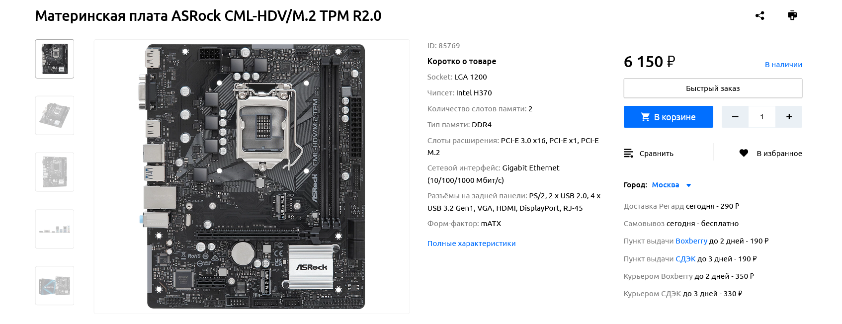 Не нужна для Core i3-10105F и продвинутая материнская плата, хватит самой бюджетной, главное — чтобы был разъем M.2 под современные SSD-накопители, гигабитная сеть и достаточное количество портов USB. Как, к примеру, у ASRock CML-HDV/M.2 TPM R2.0.