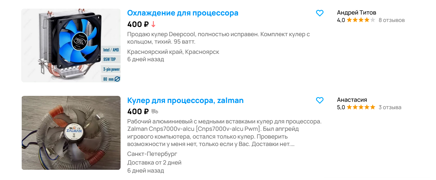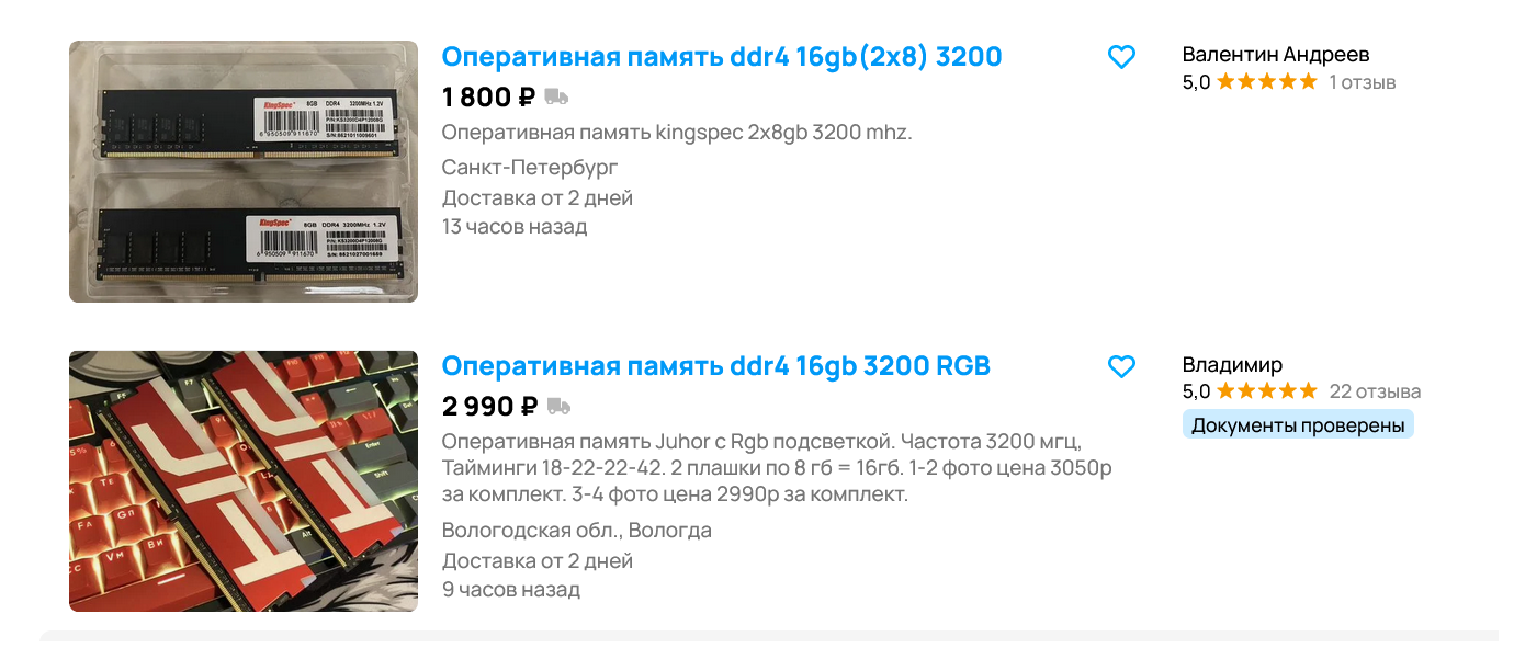 | 16 ГБ ОЗУ DDR4 3200 МГц, б\у | 2000 рублей | 2000 рублей |