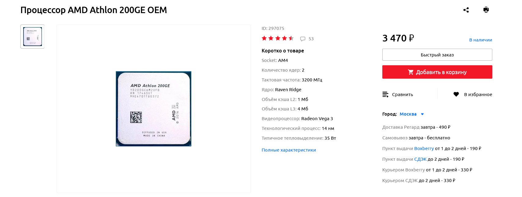И, наконец, последний процессор в этой подборке, который стоит сущие копейки — Athlon 200GE. Два ядра, четыре потока и встроенная графика Radeon Vega 3 — эта модель отлично подойдет в офисный ПК, или в мультимедийный, на котором смотрят YouTube и фильмы, но еще играют в Мир танков, Portal 2 и другие нетребовательные игры.