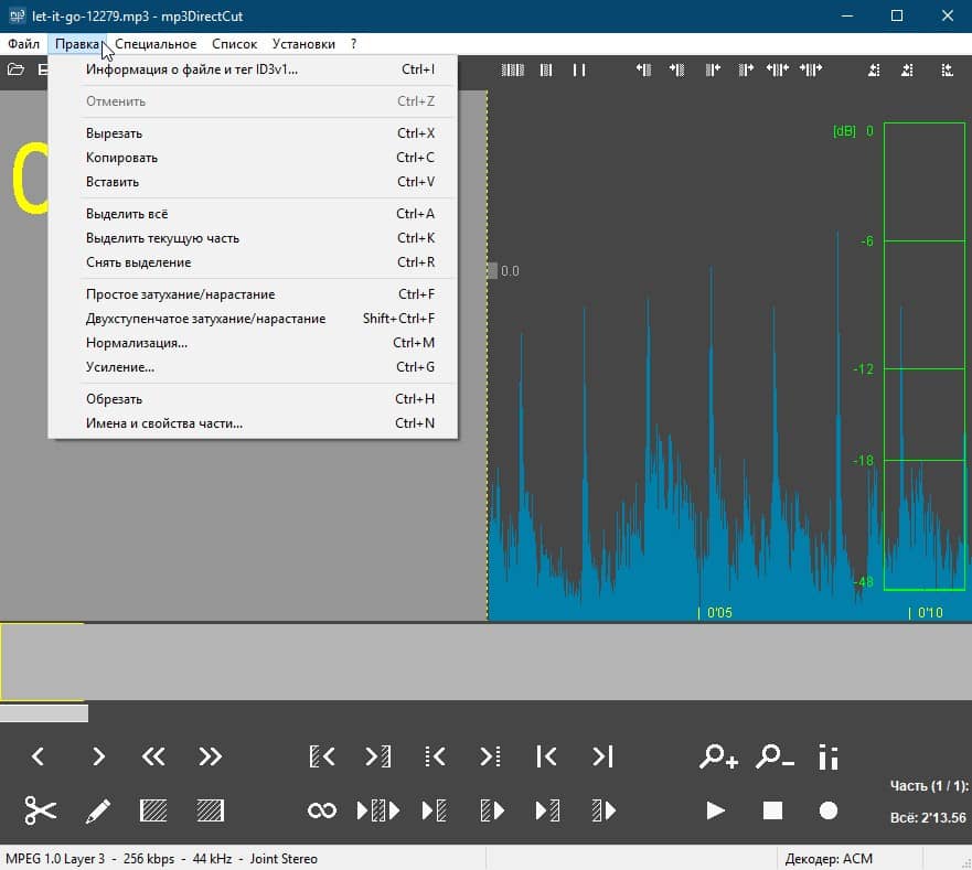 А если мне требуется отредактировать аудиофайл, например, обрезать ненужное на записи с диктофона, то для этого я использую простой аудиоредактор mp3DirectCut, в котором нет ничего лишнего. Он позволяет резать и склеивать аудиофайлы без потери качества и нормализовать звук, если он слишком тихий.