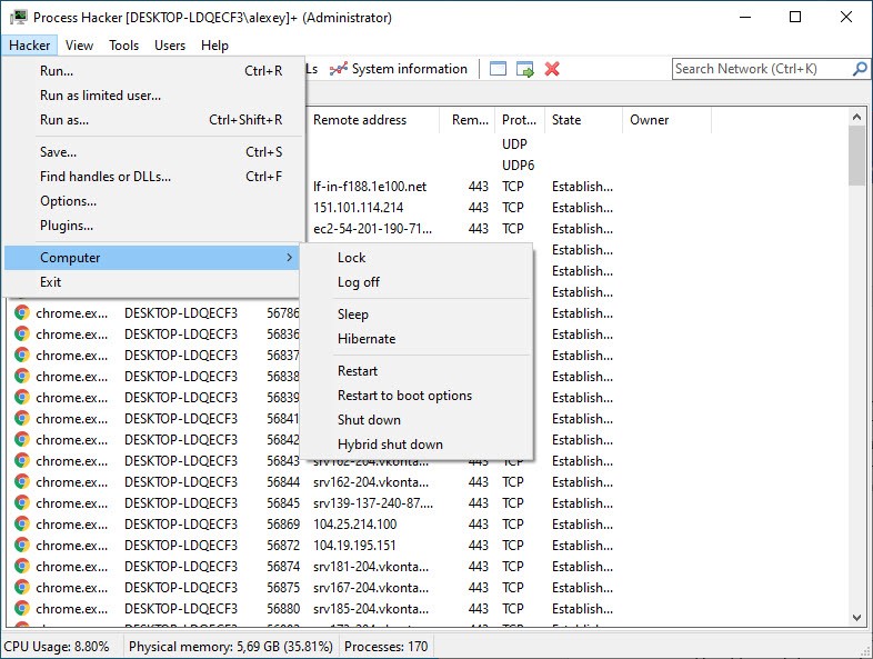 А чтобы разобраться со всеми запущенными процессами в Windows, установите утилиту Process Hacker — расширенный аналог Диспетчера задач Windows. Он предоставляет исчерпывающие данные о каждом процессе и способен останавливать и завершать любые процессы в системе, недоступные стандартному Диспетчеру задач, в том числе даже процессы антивирусов.