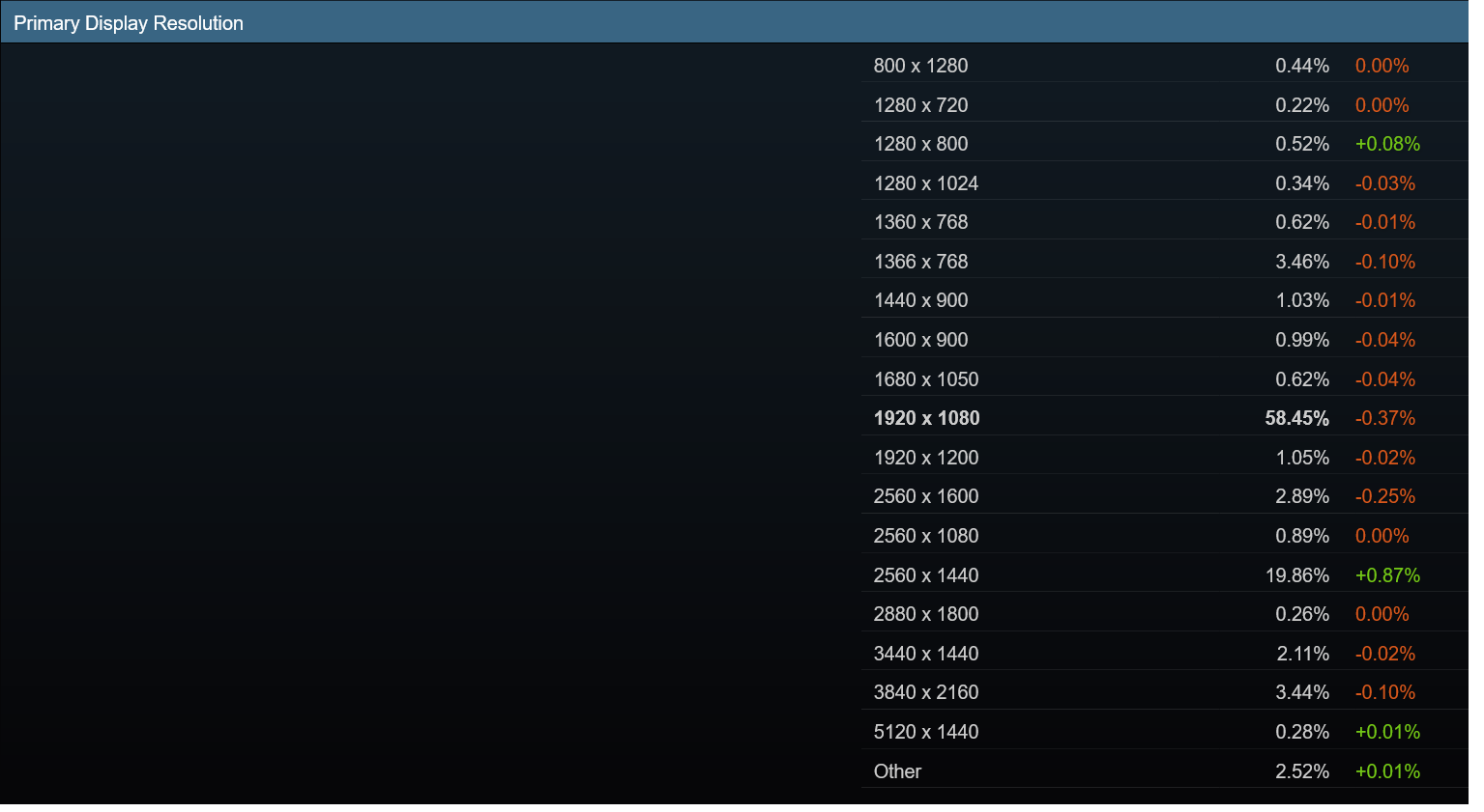 Хотя разрешение 4K трудно назвать популярным даже в 2024 году — судя по статистике Steam, количество геймеров с такими мониторами практически не растет. А вот разрешение QHD, составляющее 2560x1440 пикселей, становится все популярнее, предлагая очень четкую и детализированную картинку на мониторах со средним размером диагонали. И к видеокарте такое разрешение не столь требовательно, как 4K или 3840x2160.