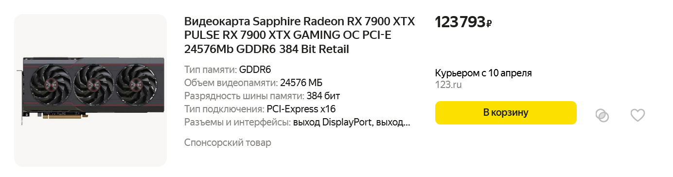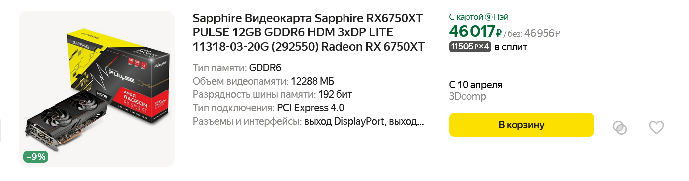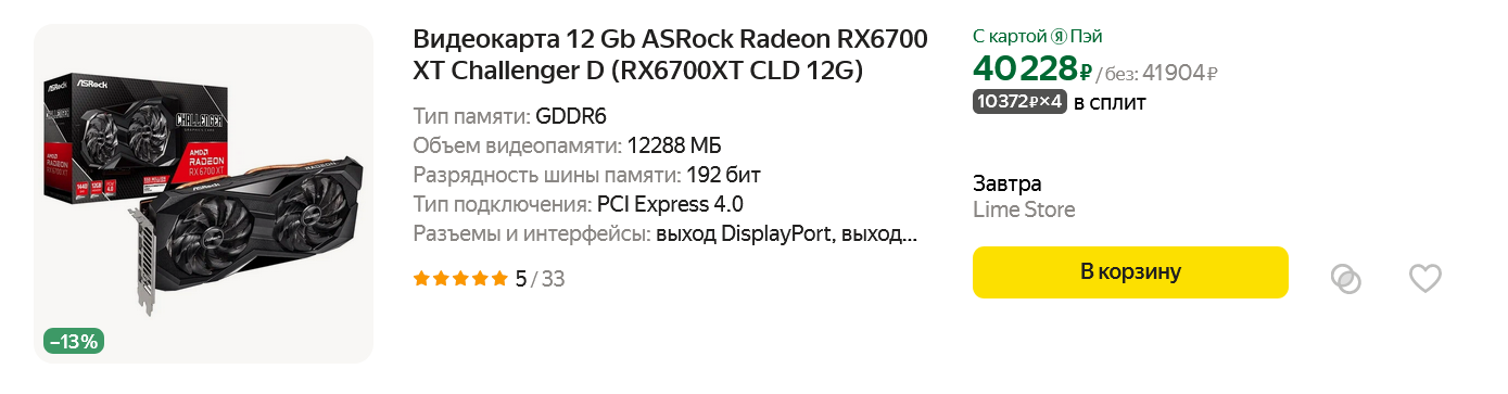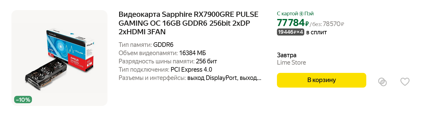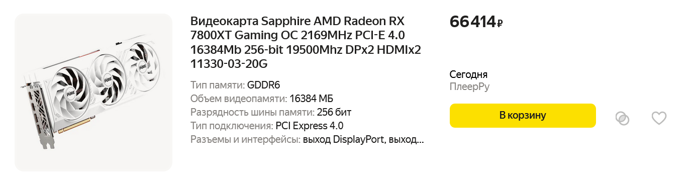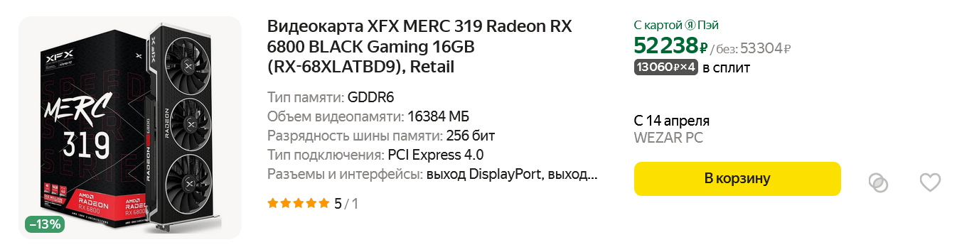 В продаже все еще встречаются топовые видеокарты прошлого поколения — Radeon RX 6800, и цена на них очень заманчива, ведь за нее вы получаете 16 ГБ быстрой видеопамяти и мощный чип, которого вполне хватает для новых игр в разрешении 2560x1440. Но учтите, что аппетиты у этих моделей немаленькие — TDP составляет 250 ватт.
