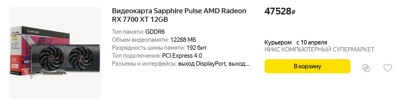 Мы только подошли к отметке в 50000 рублей, а уже встречаем видеокарту, которая почти догнала популярную GeForce RTX 4070 в в играх в разрешении QHD без задействования трассировки лучей. И даже если ее включить, то в разрешении QHD Radeon RX 7700 XT оказывается на одном уровне с видеокартой GeForce RTX 4060 Ti, что очень и очень неплохо, ведь цена у них почти одинакова.