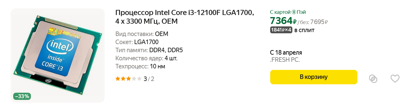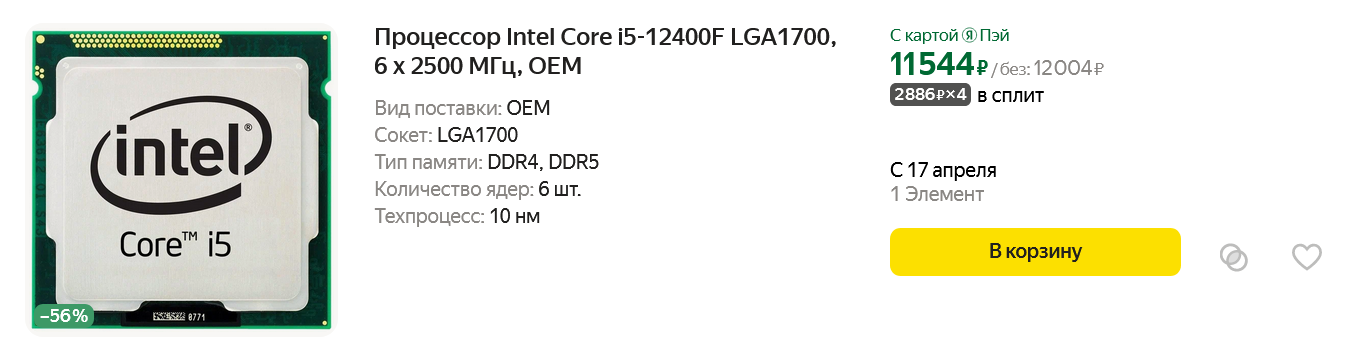 На первом месте нашего списка — довольно старый шестиядерник Core i5-12400F и, если подумать, в этом нет ничего удивительного. Привычный бренд, достаточно низкая цена и производительность, которой все еще хватает для всех новых игр.