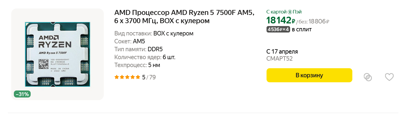 Ryzen 5 7500F стремительно набрал популярность, обогнав даже более дешевые процессоры для платформы AM4. Причины его популярности просты — лучшее на сегодня соотношение цены и производительности, более низкий, чем у старших моделей платформы AM5, нагрев и нетребовательность к материнским платам.