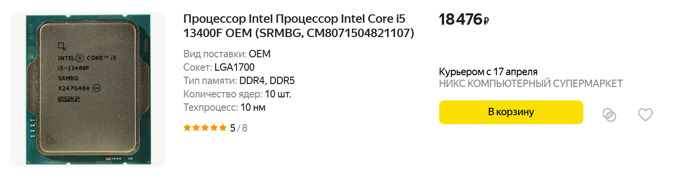 А вот высокая цена шестиядерника Core i5-13400F не позволяет стать ему таким же популярным, как лидеру нашего списка — Core i5-12400F, даже несмотря на дополнительные четыре энергоэффективных ядра. В минусы модели можно записать и более высокое, чем у Core i5-12400F, энергопотребление, переваливающее за 110 ватт. А это значит, что вам придется раскошелиться еще и на мощную систему охлаждения и материнскую плату с продвинутой системой питания.