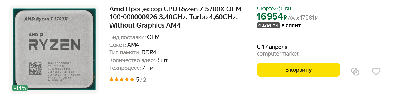 Назвать восьмиядерник Ryzen 7 5700X оптимальной покупкой в 2024 году сложно, ведь немногим более дорогие процессоры Ryzen 5 7500F гораздо быстрее и в играх, и в рабочих задачах, даже несмотря на меньшее количество ядер. А вот для замены старенького Ryzen 5 1600 или Ryzen 7 2700 этот процессор отлично подойдет, ведь он будет работать в большинстве материнских плат AM4.