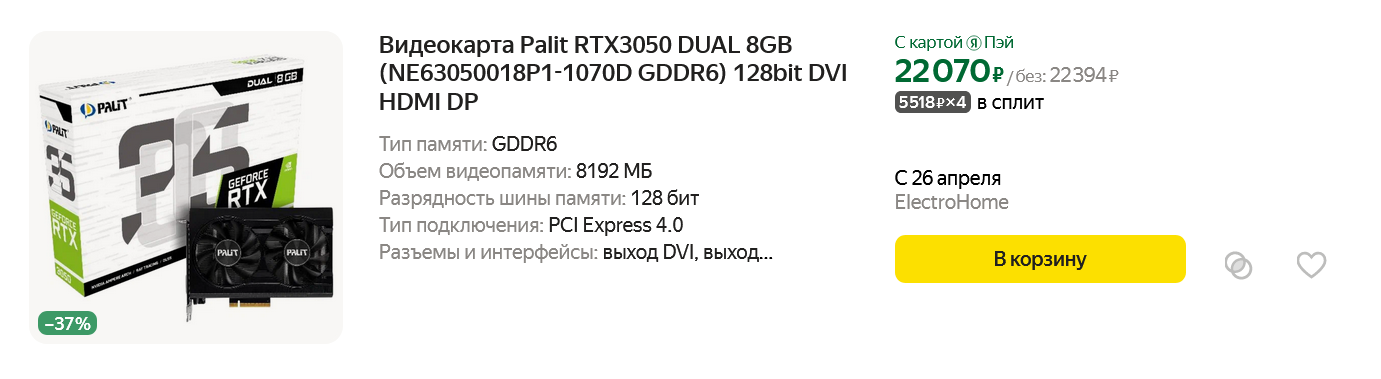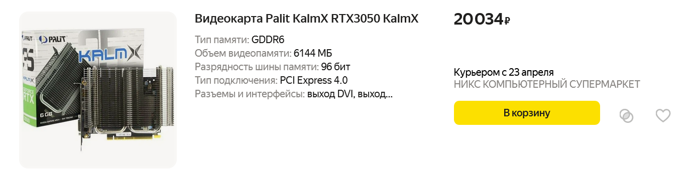 Еще дешевле стоит GeForce RTX 3050 с 6 ГБ видеопамяти и, если посмотреть на конкурентов этой модели в лице Radeon RX 6500 XT и GeForce GTX 1650, то становится неудивительно, почему эта видеокарта попала в список самых популярных — она быстрее, имеет функцию DLSS и на треть больше видеопамяти. А еще — очень низкое энергопотребление, которое позволяет выпускать бесшумные модели с пассивной системой охлаждения.