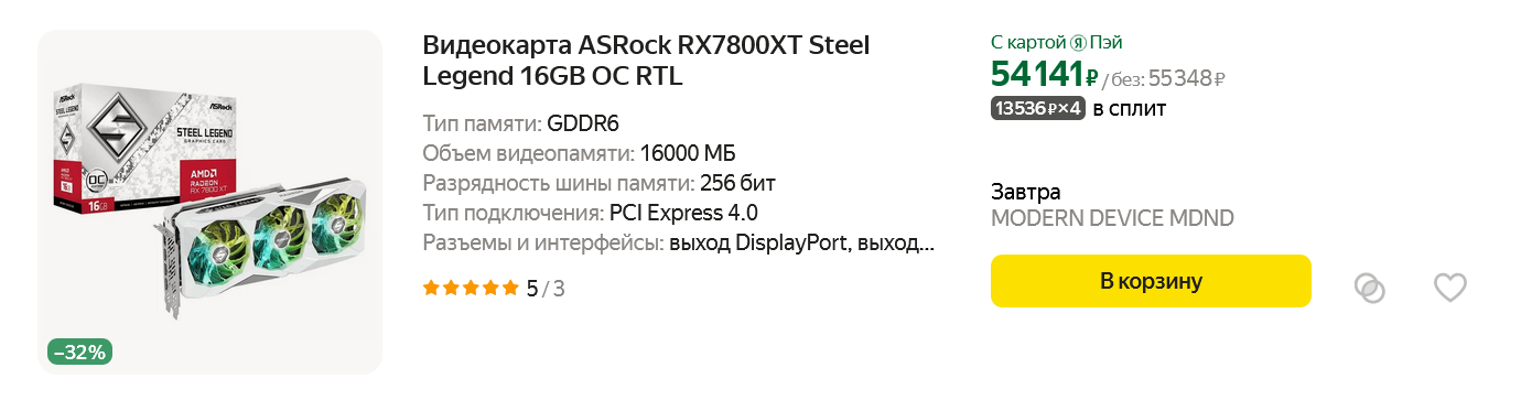 Radeon RX 6400 — это одна из самых недорогих новых видеокарт в 2024 году, которая позволяет хоть как-то поиграть и из-за этого ее и выбирают многие непритязательные покупатели. Производительность у этой модели на уровне GeForce GTX 1650, а это значит, что на "минималках" можно будет пройти даже Cyberpunk 2077, если, конечно, вас устроит 30-40 средних FPS.