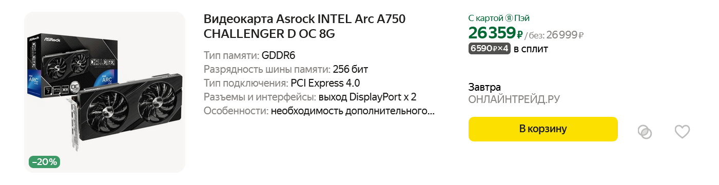 Третий игрок на рынке видеокарт — Intel, обостряет конкуренцию, что в итоге выльется для нас, геймеров, в более низкие цены и более привлекательные модели видеокарт с оптимальными характеристиками. IntelArc A750 при цене всего в 26000 рублей, показывает среднюю производительность как у GeForce RTX 3060, что очень и очень неплохо.