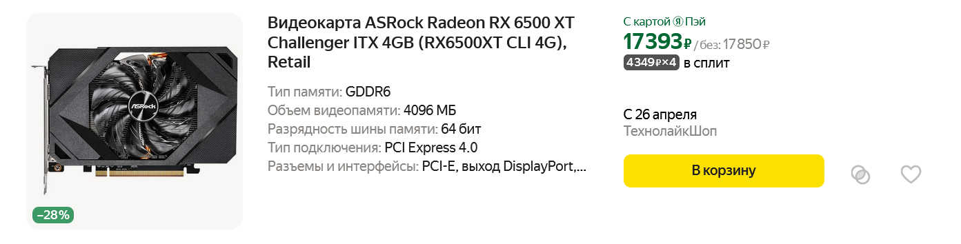 И на последнем, двенадцатом месте списка самых популярных видеокарт расположилась Radeon RX 6500 XT, весьма неоднозначная модель с очень узкой шиной видеопамяти и всего четырьмя линиями PCI Express для ее подключения. Но, в бюджетных системах с шиной PCI Express 4.0, например, в связке с процессором Core i3-12100F, эта модель за свою цену смотрится неплохо.