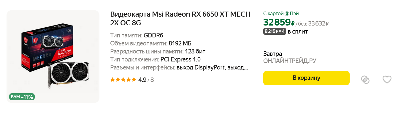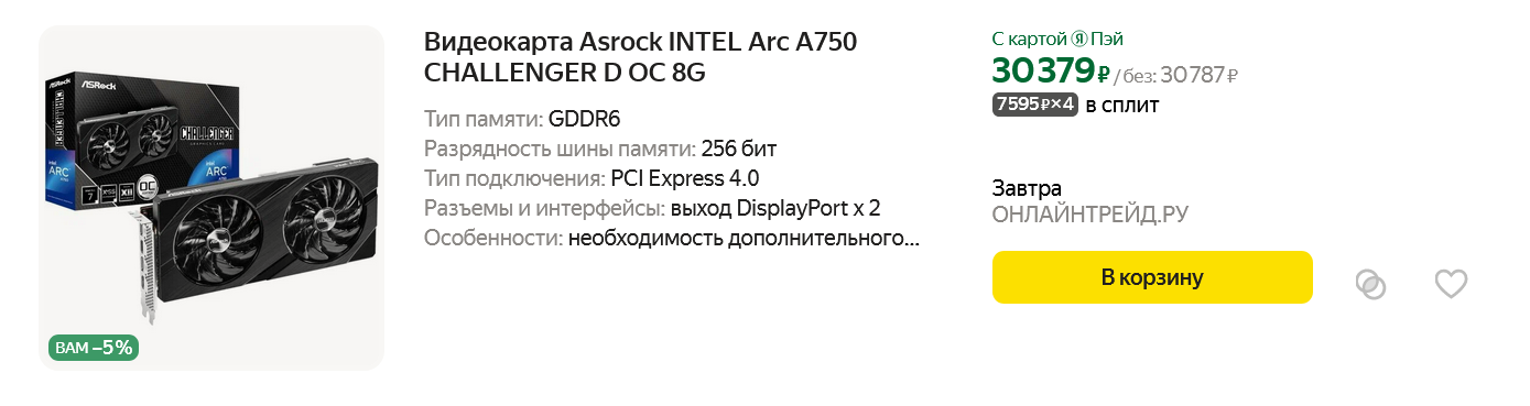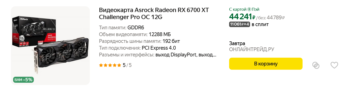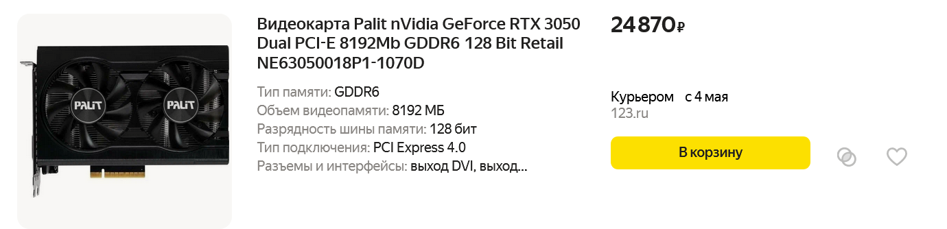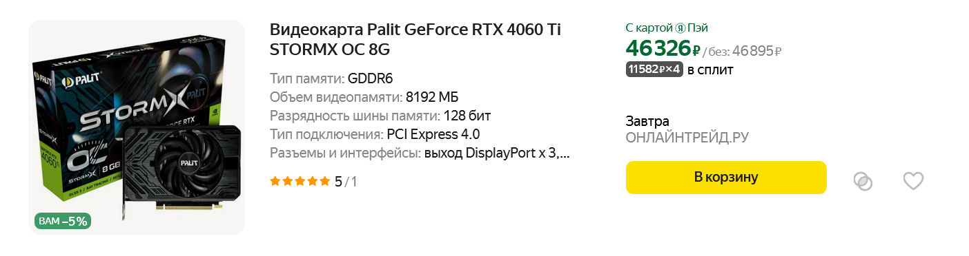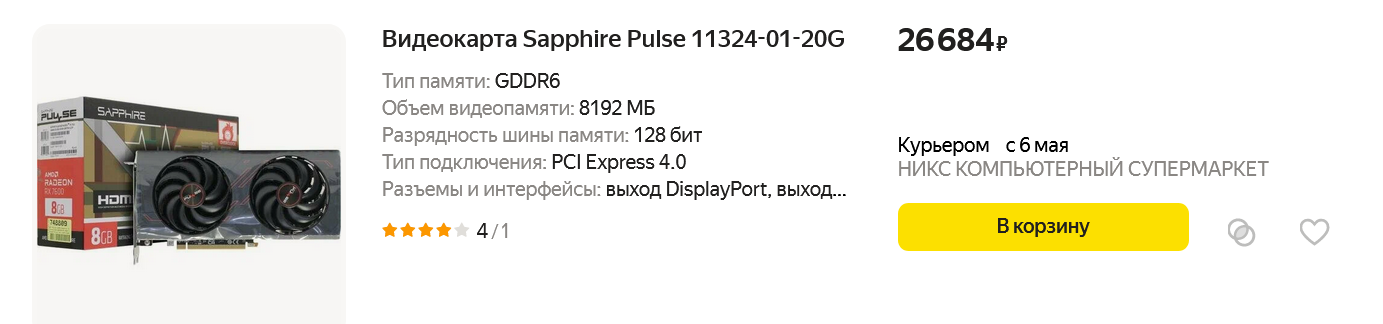 Если посмотреть ассортимент видеокарт, ориентированных на гейминг в разрешении Full HD, то весной 2024 года на популярных торговых площадках можно найти вот такие модели с ценой от 24000 и до 46000 рублей: