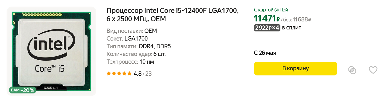 Давайте выберем такие модели, о покупке которых вам не придется жалеть, а примеры цен возьмем на маркетплейсе Яндекс Маркет. И в этот раз не будем смотреть на топовые модели, а только на недорогие процессоры, которые могут стать основой оптимального и выгодного игрового ПК для практичного геймера. Ведь количество таких геймеров, которым нужна возможность играть на ПК за небольшие деньги, только растет из-за того, что актуальный игровой компьютер в 2024 году уже перевалил в цене за 80000 рублей. Это мы недавно выяснили в блоге Подсчитываем, во сколько обойдется народный игровой компьютер в мае 2024 года. А для жителей небольших городов это очень чувствительная сумма, чтобы отдать ее за возможность играть в игры.
