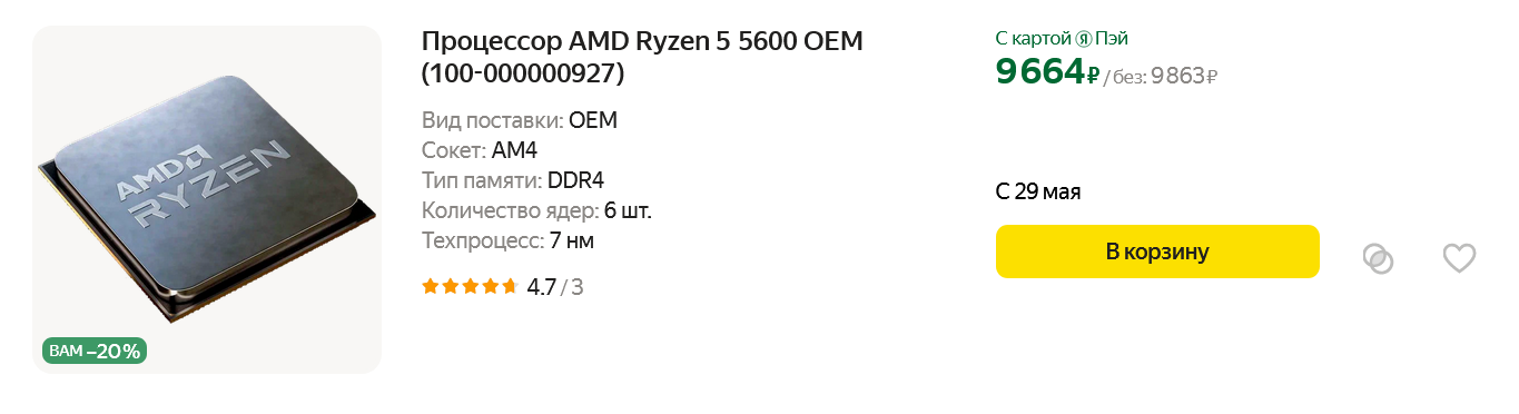 | Ryzen 5 1600 и Ryzen 5 5600X | 7500 и 13000 рублей |