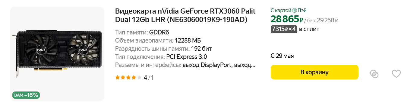 Но пожалел и я, ведь цены на новые видеокарты не спешили падать и попробовав посидеть на древней видеокарте Radeon HD 4870 я не выдержал и купил GeForce GT 1030 по конской цене, чтобы хоть как-то играть и смотреть фильмы с ПК на телевизоре, подключенном как второй монитор. Низких цен на видеокарты я так и не дождался, купив GeForce RTX 3060 практически на пике цены, ожидая падения рубля в 2022 году. Но рубль наоборот, укрепился и горячая и шумная Palit GeForce RTX 3060 Dual стала самым дорогим и неудачно купленным компонентом в моем ПК.