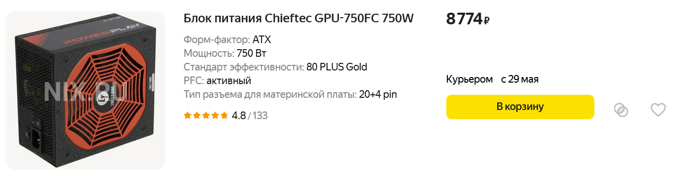 А вот точно такой же блок питания — Chieftronic GPU-750FC, можно найти примерно за такую же сумму.