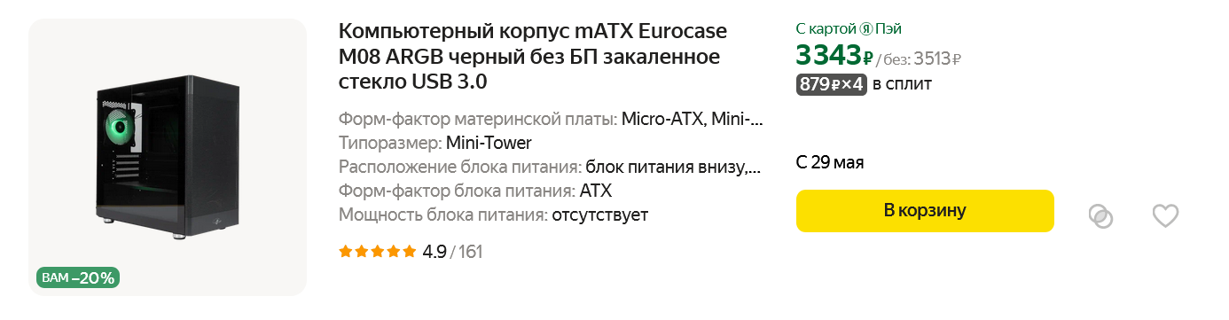 Да и хваленый корпус Fractal Design Define R4 оказался слишком тяжелым и неудобным, и я собираюсь сменить его на современную, легкую модель, цены на которые сегодня очень привлекательны, например, Eurocase M08 ARGB.