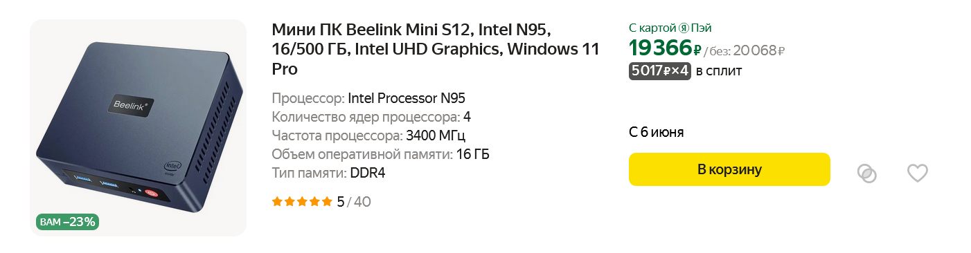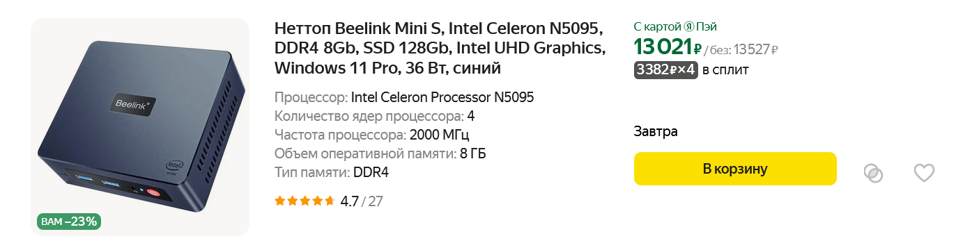 Ну а я все-таки буду проходить на этом ПК легендарную стратегию Heroes of Might and Magic III: Horn of the Abyss, тем более, что недавно для нее вышло дополнение "Фабрика" с совершенно новой фракцией. Но, чем больше я вожусь с этим ПК, тем больше понимаю, что гораздо проще купить новый крохотный мини-ПК, который можно просто кинуть в сумку и отвезти на дачу, а также на работу или в гости к друзьям. Тем более, что стоят они уже вполне демократично. Например, на Яндекс Маркете наиболее популярны модели с ценой от 13000 до 19000 рублей.