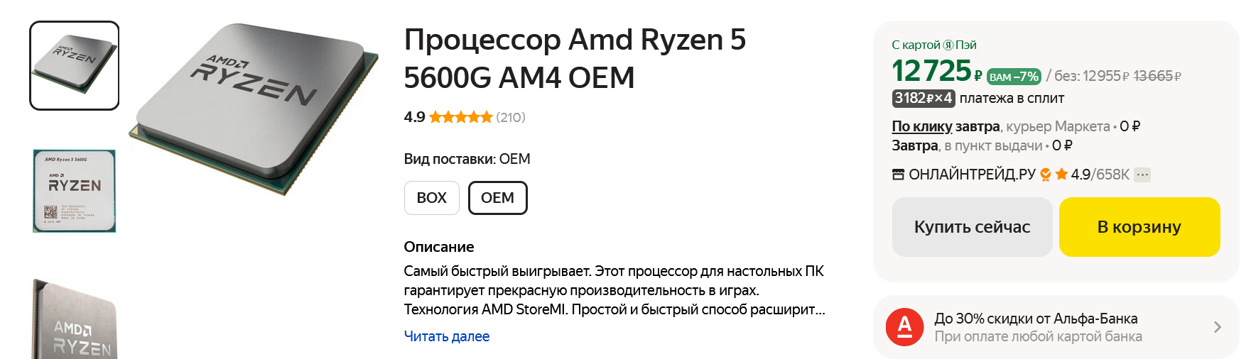 Ryzen 5 5600, который уже можно найти дешевле 10000 рублей. И эта доплата однозначно стоит того, ведь за нее вы получите в два раза больший, чем у Ryzen 5 5500, кэш третьего уровня, немного подросшие частоты и поддержку шины PCI Express 4.0. А иметь ее очень желательно, выбирая новые видеокарты у которых всего восемь линий PCI Express для подключения — Radeon RX 7600 или GeForce RTX 4060. Но учтите, что для этого нужна еще и материнская плата на чипсете AMD B550, а за нее придется доплатить еще две-три тысячи рублей.