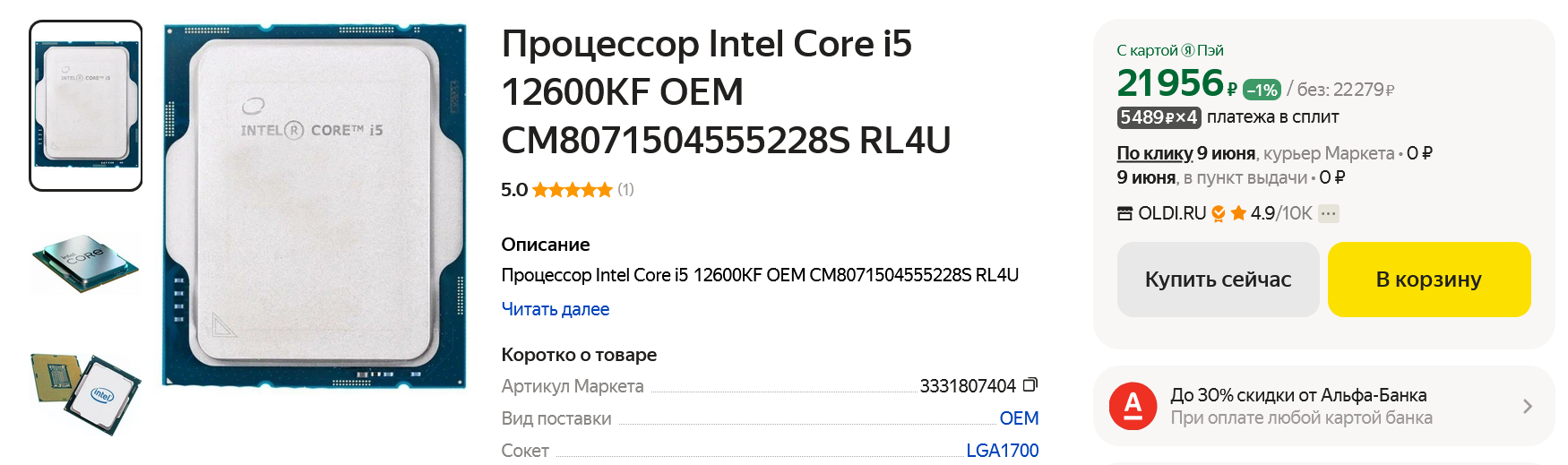 Компания Intel на всю россыпь бюджетных шестиядерников от AMD может предложить только одну модель — Core i5-12400F, и радует только то, что цены на этот популярный процессор постепенно идут вниз.