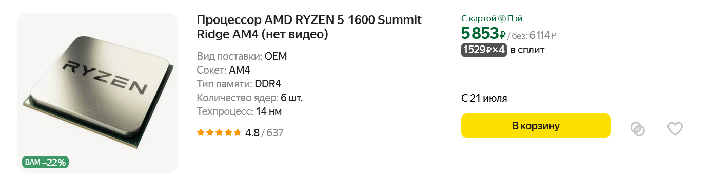 Процессору Ryzen 5 1600 исполнилось уже более семи лет, но записывать его в устаревшие не поднимается рука. Слишком много этих моделей все еще есть на руках геймеров, да и из продажи этот шестиядерник все никак не исчезнет. И у меня во втором ПК до сих пор трудится Ryzen 5 1600, который одно время даже работал с видеокартой GeForce RTX 3060 и его производительности не хватало с этой видеокартой только в нескольких играх. Стоит этот процессор очень недорого, но в 2024 году есть много более привлекательных бюджетных решений.
