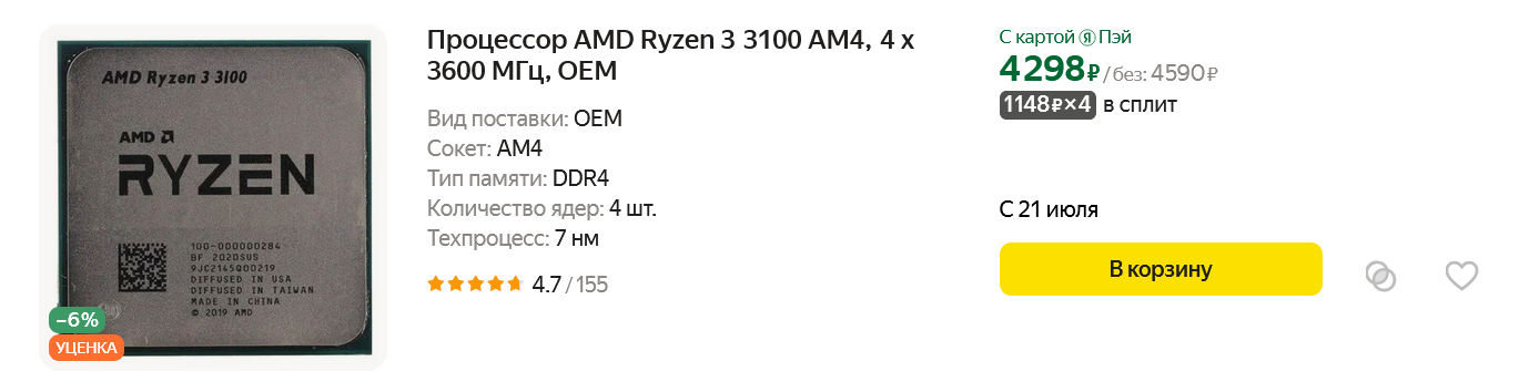 Думаю, многие уже забыли такие четырехъядерные модели для сокета AM4, как Ryzen 3 3100 и Ryzen 3 3300X. В широкой продаже они были очень недолго, а в играх показывали неплохие для своей цены результаты. Даже странно, что AMD не стала массово выпускать четырехъядерники на архитектуре Zen 3, хотя планы такие были. А ведь какой-нибудь недорогой и холодный Ryzen 3 5100 мог стать очень популярным. Видимо, компании AMD было выгоднее распродавать складские запасы недорогих шестиядерников прошлых поколений, чем создавать им конкурента по цене на новой архитектуре.