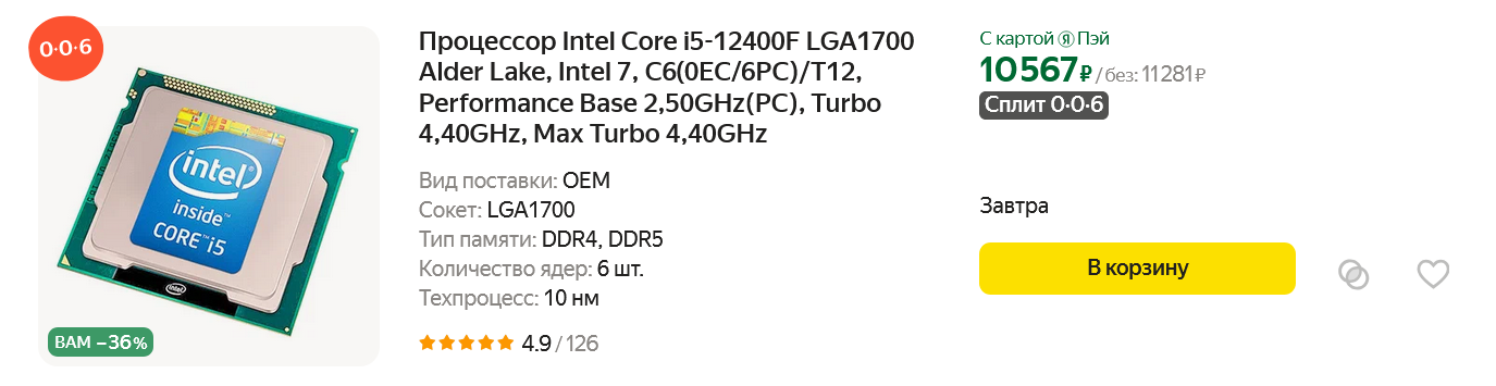 А еще нельзя не заметить, что доля Windows 10 опять начала расти и эта операционная система установлена более чем на половине игровых ПК. Будем надеяться, что это подтолкнет компанию Microsoft к увеличению срока поддержки этой ОС, ведь представить, что будет с огромным парком бюджетных и старых ПК, которые не способны нормально работать с Windows 11 — просто страшно. А теперь давайте перейдем к подсчету того, во сколько летом 2024 года обойдется самый распространенный игровой ПК в мире, взяв за основу цены маркетплейса Яндекс Маркет и начнем с процессора.