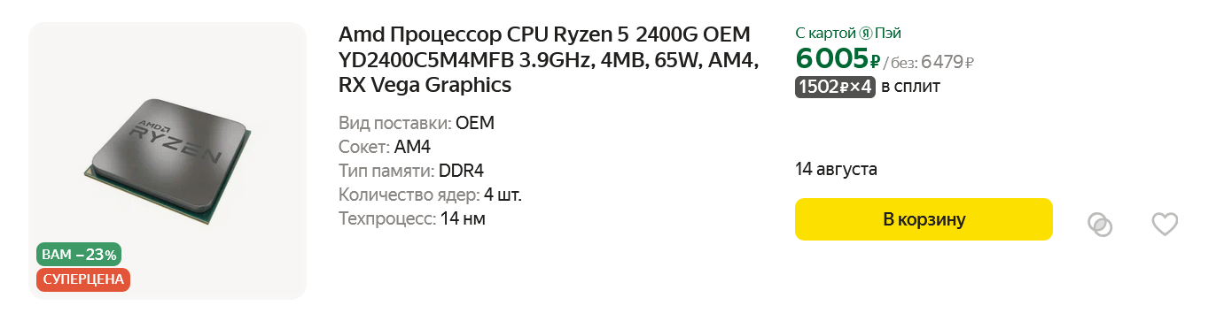 А еще, если взглянуть на процессоры со встроенной графикой для платформы AM4, становится понятно, что, купив их, можно очень недорого получить производительность уровня видеокарты GeForce GT 1030 и даже немного выше. Например, на Яндекс Маркете сегодня можно за копейки купить Ryzen 5 2400G.