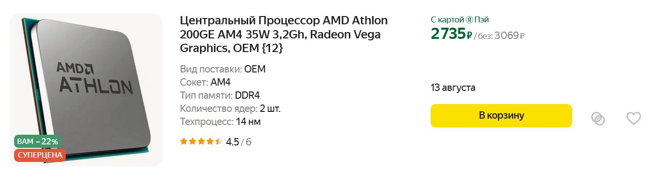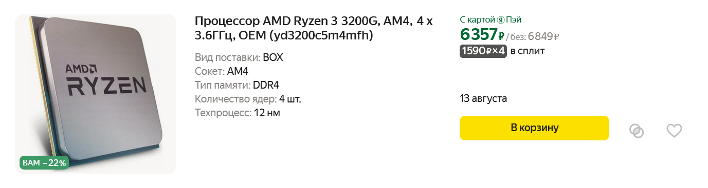 Чуть дороже обойдется Ryzen 3 3200G.