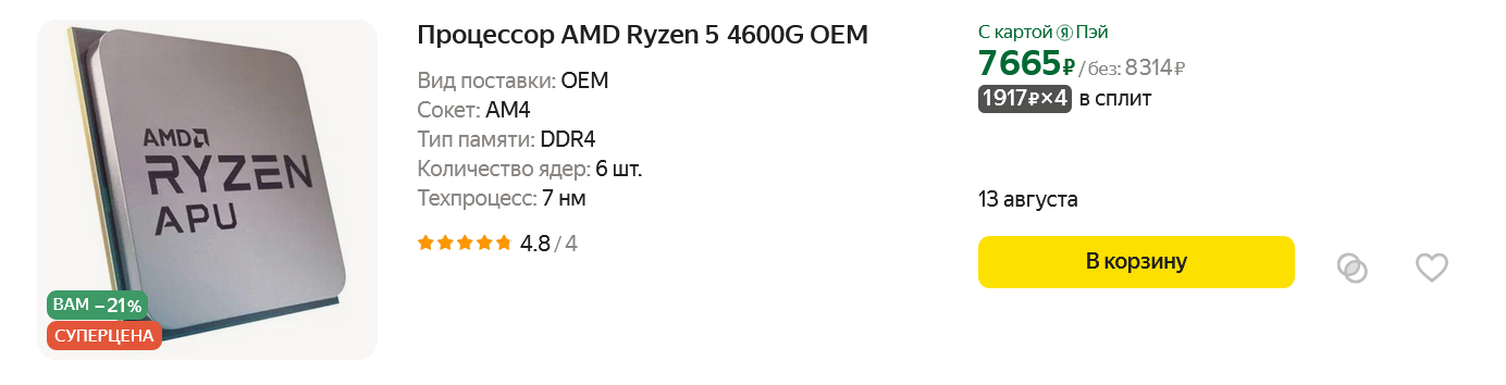 А недорогой шестиядерник Ryzen 5 4600G и вовсе идеален для универсального мультимедийного ПК.