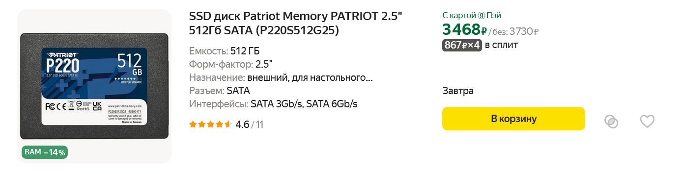 И PATRIOT (P220S512G25) объемом 512 ГБ.
