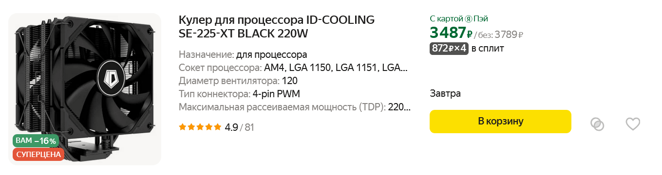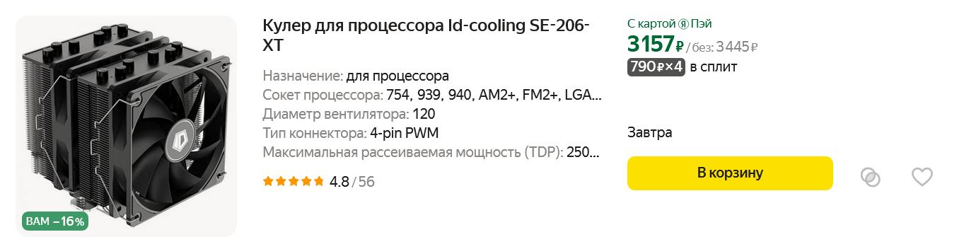 Это двухсекционный ID-COOLING SE-206-XT с шестью теплотрубками.