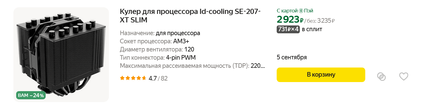 В ID-COOLING SE-207-XT SLIM использованы две секции радиатора и целых семь теплотрубок, а стоит он даже меньше 3000 рублей!