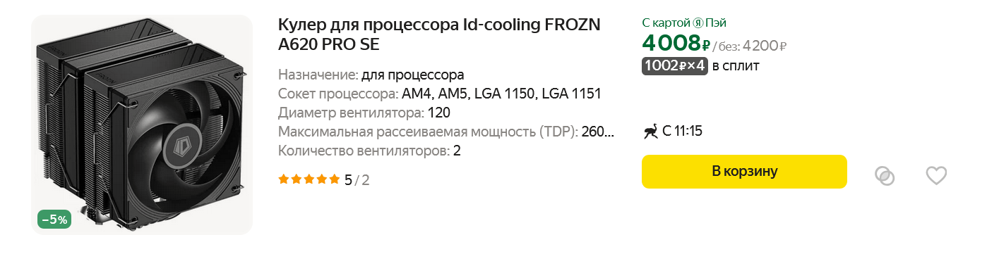 А самая дорогая модель — ID-COOLING FROZN A620 PRO SE, обладает самым высоким показателем рассеивания тепла, целых 260 ватт.