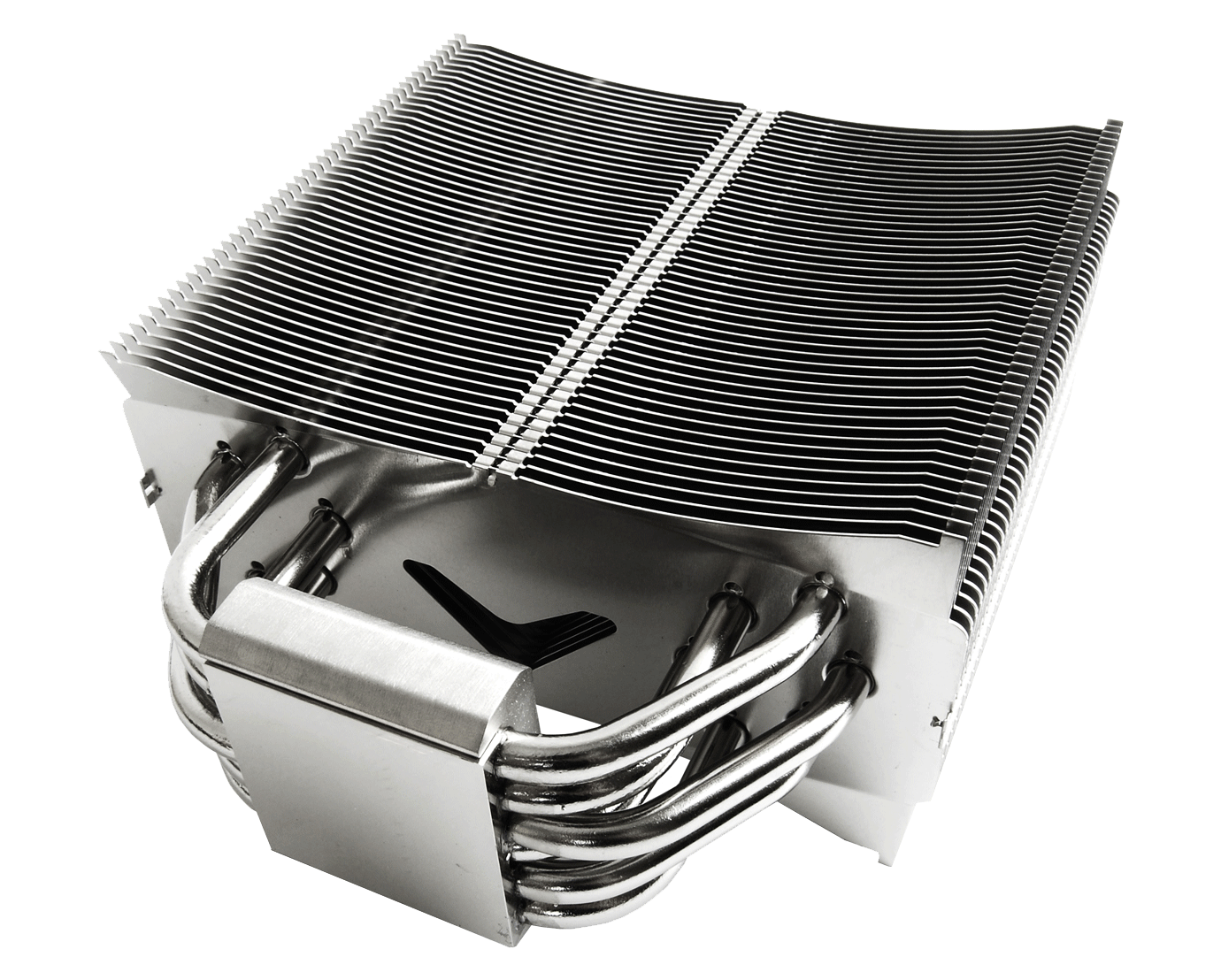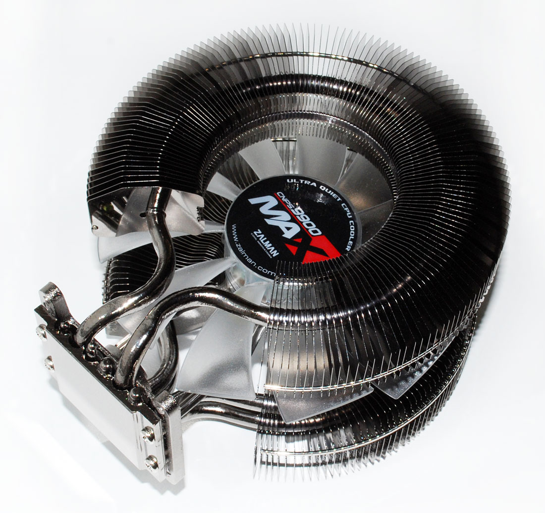 Кулер Zalman CNPS9900 MAX появился в 2010 году и стал венцом развития конструкции, начало которой положили кулеры Zalman CNPS 9500 Led и Zalman CNPS 9700 Led. Выглядел кулер очень эффектно за счет радиально расположенных ребер, весил умеренно — 755 грамм и, несмотря на всего три теплотрубки, совсем немного уступал топовым кулерам классической башенной конструкции. На первый взгляд кажется, что тепловых трубок в Zalman CNPS9900 MAX шесть, но на самом деле их три, просто они длинные и выйдя из подошвы кулера и пройдя сквозь радиатор, они снова возвращаются в подошву. Zalman CNPS9900 MAX проигрывал более технологичному кулеру Thermalright Silver Arrow около 10 градусов при одинаковых оборотах вентилятора, и это можно было бы ему простить — но главная его проблема была в высокой цене. А она не могла быть ниже, так как это был раскрученный бренд и кулер с очень впечатляющим внешним видом.