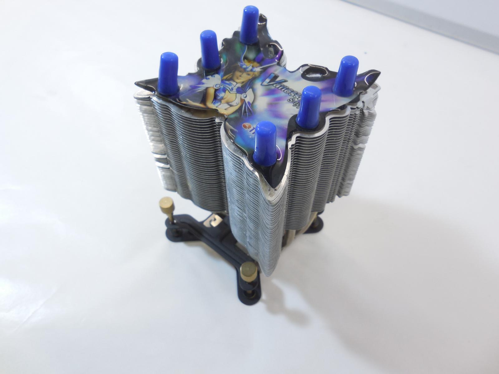 Еще один кулер от Titan в те годы привлекал геймеров очень необычным дизайном, который впоследствии практически не использовался. Это был Titan Vanessa S-type, ребра которого были выполнены в форме бабочки, а на верху был нанесен принт в виде фэнтезийного существа. В Titan Vanessa S-type использовались всего три теплотрубки, а форма радиатора не способствовала эффективной продувке и, конечно же, в тестах он проигрывал таким суперкулерам, как Thermaltake Big Typhoon. Но сегодня вполне справился бы с шестиядерным процессором уровня Ryzen 5 5500.