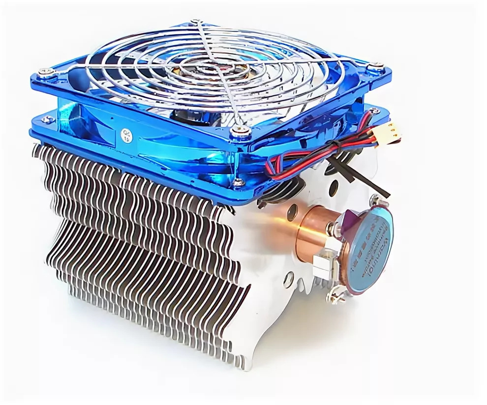 Думаю, многие из вас будут удивлены, узнав, что были кулеры, которые сами потребляли немало энергии. Это модели, в которых использовался термоэлектрический модуль Пельтье и одним из самых известных стал кулер Titan Amanda TEC, который в середине нулевых попал на обложки большинства компьютерных журналов. Два вентилятора, четыре теплотрубки и потребление до 50 ватт — популярными такие модели не стали, хотя и охлаждали заметно лучше, чем топовые суперкулеры тех времен, например, Thermaltake Big Typhoon. Обзор Titan Amanda TEC вышел на нашем сайте в 2006 году.