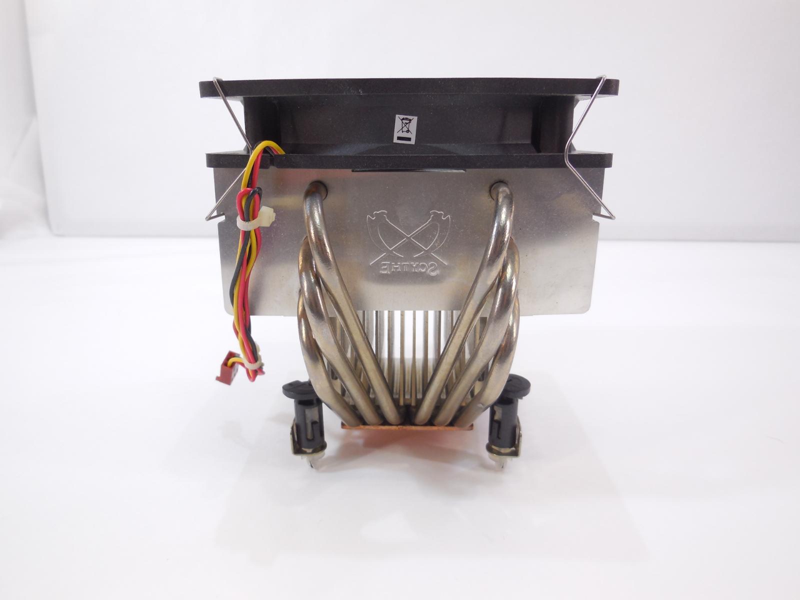 Кулер Scythe Andy Samurai Master явно задумывался как конкурент Thermaltake Big Typhoon, используя аналогичное расположение вентилятора, дующего в сторону материнской платы и целых шести теплотрубок. А еще компания Scythe давно экспериментировала с маленьким дополнительным радиатором, расположенным прямо над пяткой кулера и позволяющим выиграть еще пару градусов. Но именно пары градусов Scythe Andy Samurai Master не хватило, чтобы обойти "Большой Тайфун" на сопоставимых оборотах вентиляторов.