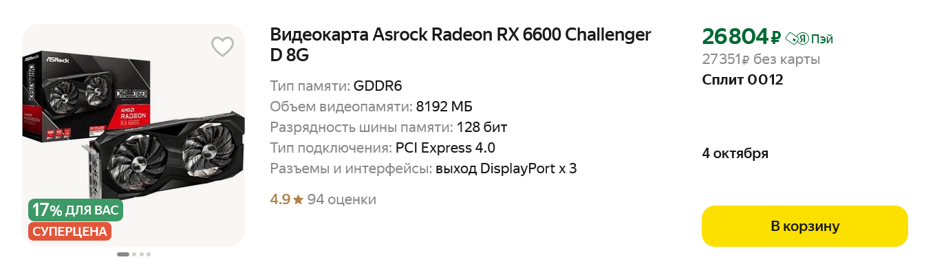 Игра God of War: Ragnarök хороша всем, кроме системных требований, которые подросли со времен выхода на ПК God of War в 2022 году. Даже чтобы получить стабильные 60 кадров в секунду в разрешении 1920х1080 точек и средних настройках графики, вам потребуется видеокарта GeForce RTX 2060 SUPER или Radeon RX 5700. Этих видеокарт давно нет в продаже, а значит, разумным минимумом для игры в God of War: Ragnarök станет Radeon RX 6600, найти которую на Яндекс Маркете иногда можно по очень низкой цене.