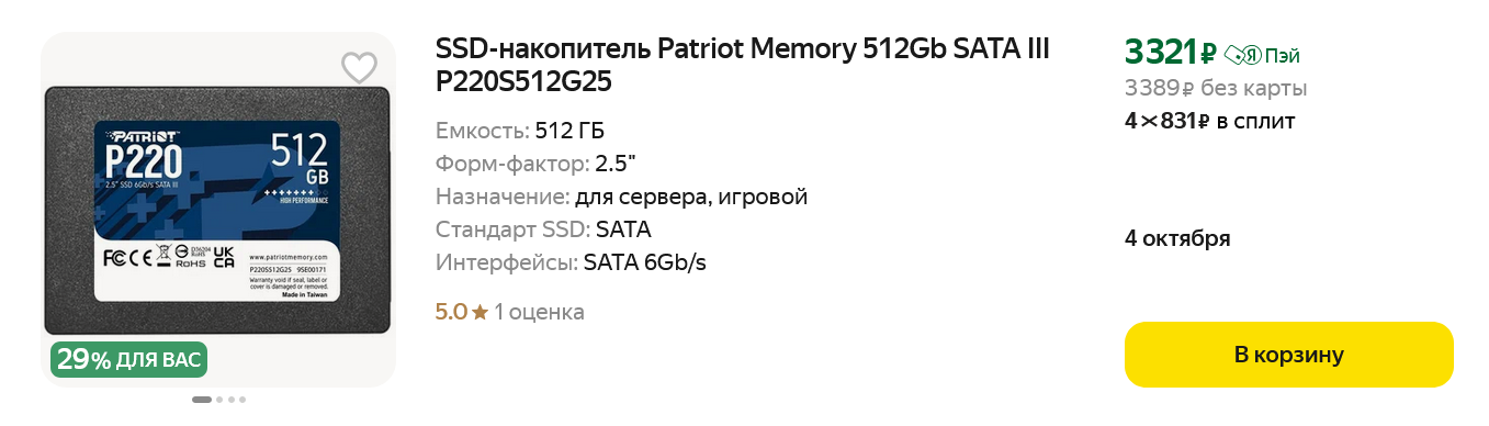 Еще часто покупают SSD Kingston NV2, а из SATA SSD в форм-факторе 2.5", которые можно установить в любой ПК, популярны модели Patriot P210 и Patriot P220.