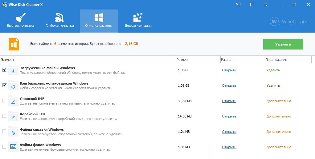 Несмотря на то, что в Windows давно есть встроенное средство очистки дисков от мусора, работает оно не очень быстро и иногда может подвиснуть на минуту даже при очистке Корзины. Да и варианты мест, которые можно очистить, и сама глубина очистки встроенным средством небольшая, поэтому стоит воспользоваться сторонней программой, например — Wise Disk Cleaner. Она очищает не только Windows, но сразу и кеш или историю браузеров, а очистку можно запланировать, и она будет происходить регулярно и автоматически.