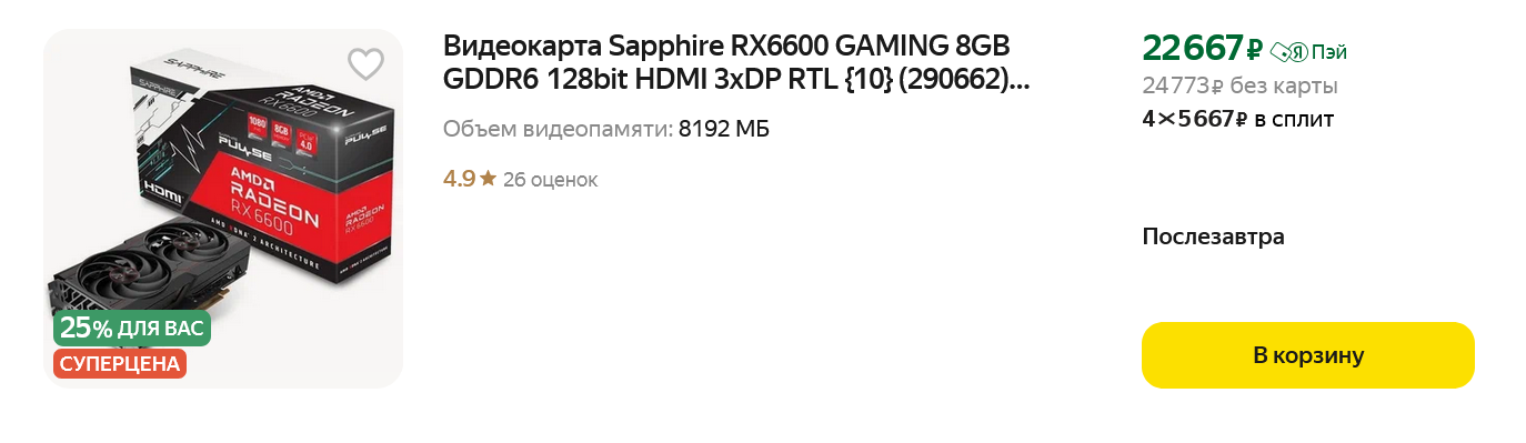 И гораздо практичнее купить Radeon RX 6600, видеокарту, которая всего за 22667 рублей позволит вам пройти все новинки на средних и высоких настройках графики, но с переключателем RTX в положении OFF. За такую цену этой видеокарте можно это простить, и если вы равнодушны к трассированным новинкам, то Radeon RX 6600 станет самой оптимальной покупкой даже в 2024 году. В минусы Radeon RX 6600 можно записать только объем видеопамяти в 8 ГБ, чего становится уже мало в новых играх, но если вам нужен больший объем, то имеет смысл смотреть в сторону GeForce RTX 3060. Ведь все новинки среднего уровня более новых поколений тоже имеют всего 8 ГБ VRAM.
